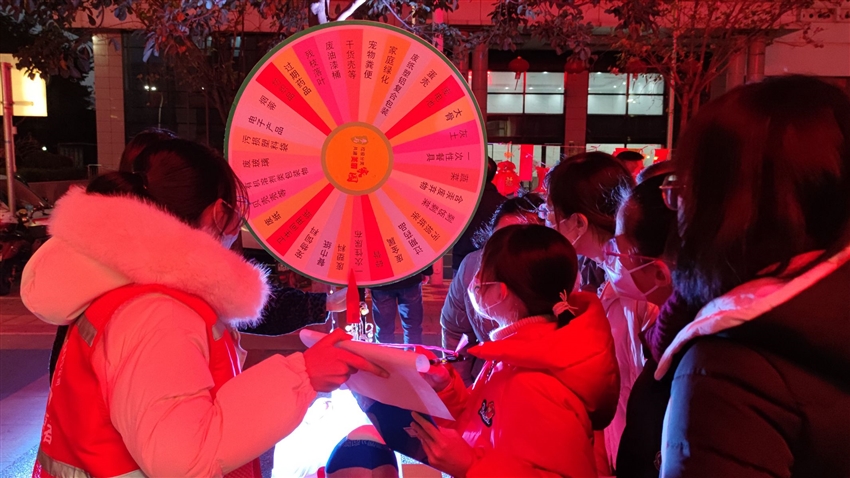 為了讓大家能夠進一步學習垃圾分類的知識,營造良好的生活環(huán)境,現(xiàn)場還開展了大轉盤比賽,轉盤上面寫有塑料瓶、堅果殼、碎玻璃、蛋殼、衛(wèi)生紙等30種垃圾,參加活動的同志們有些為如何分類犯了難,有些則胸有成足。經過比拼和講解,活動普及了垃圾分類知識,樹立了垃圾分類新風尚。